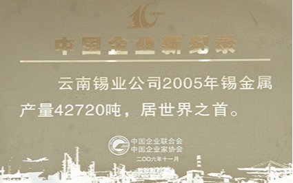 2005年,云錫錫產量達42720噸,躍居世界錫行業之首。